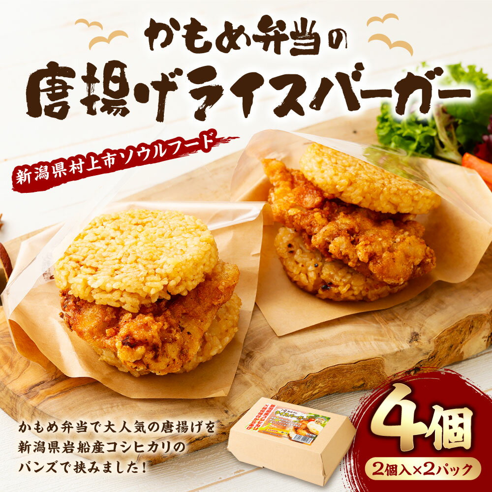 【ふるさと納税】かもめ弁当の「唐揚げライスバーガー」4個 らあげ カラアゲ から揚げ 鶏肉 鶏もも肉 米 バーガー 冷凍 お弁当 おかず おつまみ 揚げ物 揚物 簡単 調理 お手軽 電子レンジ送料無料 新潟県 村上市 1096002