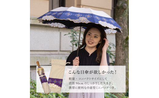 【シノワズリーモダン京都】瑞雲オーガンジーカットワーク刺繍かわず張りショート折りたたみ日傘 カーキ(日傘,折りたたみ日傘,女優日傘)[ 京都 日傘 ブランド 女優日傘 完全遮光 晴雨兼用 おしゃれ 軽量 人気 おすすめ ギフト プレゼント お取り寄せ 通販 送料無料 ふるさと納税 ]