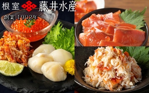 C-42099 【北海道根室産】海鮮5種詰合せ(いくら、たらばがに、花咲がに、ほたて、サーモン)