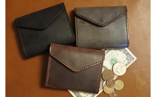 - 【バーガンディ】財布 高級ブライドルレザー ミニウォレット 手縫い カラー3色【ダークブラウン ブラック バーガンディ】|革 革製品 ミニ財布 コンパクト財布 メンズ レディース 小銭入れ ハンドメイド