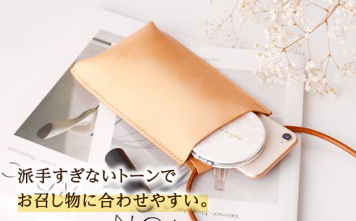 【ベージュ×ベージュ】レザー スマートフォン 用 サコッシュ〈ベージュ〉& コイン ケース 3色から選べる!〈ブラック・ベージュ・ターコイズ〉【kazu Gee factory】[OBG012_02]