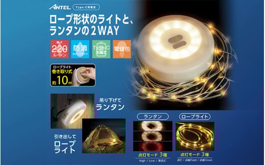 充電式巻き取りイルミネーションライト(10m) - キャンプやアウトドアでのテントライトとして最適