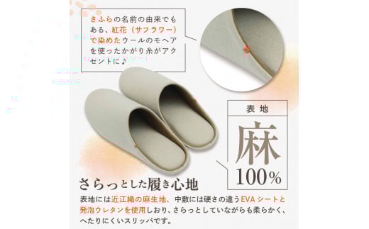- ☆ベージュ・Lサイズ☆ 麻のスリッパ「さふら」 1足