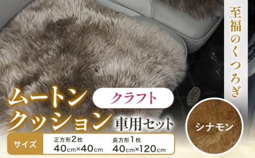 ムートン クッション クラフト シナモン 車用 セット 40cm × 40cm 2枚 40cm × 120cm 1枚 有限会社クラフトワークス 《30日以内に出荷予定(土日祝除く)》大阪府 羽曳野市 インテリア 羊 羊毛 x-1