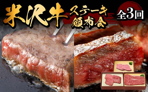 米沢牛ステーキ頒布会 全3回 F2Y-6214