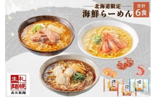 北海道 海鮮らーめん 蟹味噌 海老塩 帆立醤油 3種 計6食セット 魚介 ラーメン 森住製麺 詰め合わせ カニ エビ ホタテ 食べ比べ ラーメン お取り寄せ グルメ 生麺 食べ物 海鮮 ご当地ラーメン お土産 送料無料 北海道 札幌市