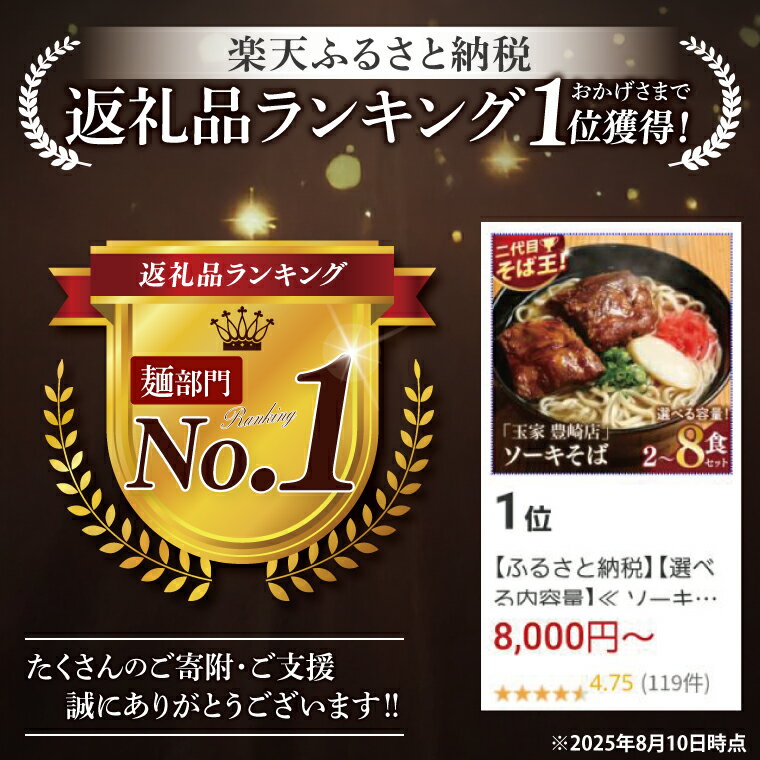 【ふるさと納税】【選べる内容量】≪ ソーキそば 2~8食セット ≫ 玉家 豊崎店 沖縄そば 生麺 そば だし 麺 麺類 沖縄 沖縄グルメ 郷土料理 琉球 沖縄料理 お取り寄せ かつお 豚骨 豚肉 ソーキ 豊見城市 人気 送料無料