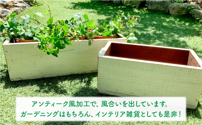 - 積み重ねて使えるアンティーク風ガーデニング木箱2個セット(M・Lサイズ)【Dondonyokunaru】 [FCF003]