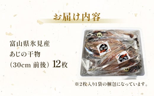 氷見産あじ開き 12枚 約30センチ!富山湾海の幸 〈冷凍〉