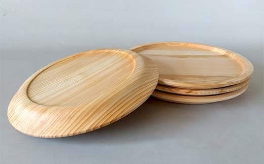 - ひのき皿 4枚セット 木製 ワンプレート 桧 工芸品 木工品 おしゃれ 贈り物 プレゼント 岐阜 中津川 F4N-1811