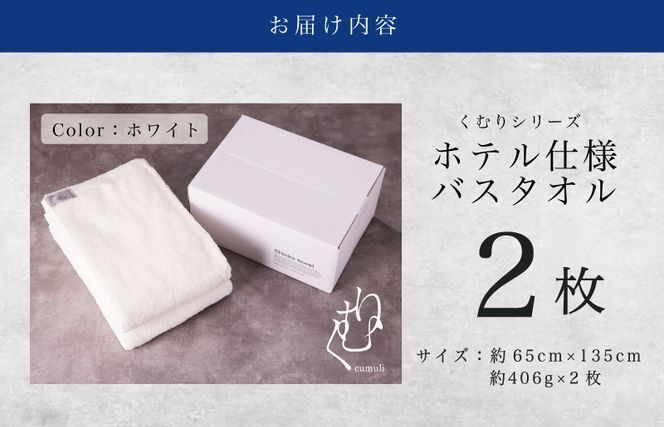 - ホテル仕様 バスタオル 2枚(ホワイト)くむりシリーズ【泉州タオル 国産 吸水 普段使い 無地 シンプル 日用品 家族 ファミリー】 G2713