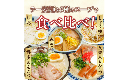 - ラー麦麺食べ比べセット15食(久留米豚骨・博多豚骨・味噌・醤油・塩 各3個)_ラー麦麺 5種 食べ比べ セット 久留米豚骨 博多豚骨 味噌 醤油 塩 15食 ラーメン スープ 麺 コシ 強い 歯切れ 色 細麺 茹で時間 1分ほど 麺 麺類 お取り寄せ 福岡県 久留米市 送料無料_Br061
