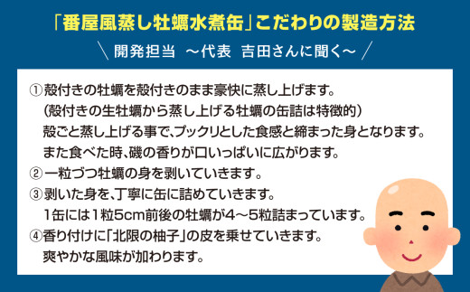 - \優秀賞受賞/ 蒸し牡蠣の缶詰 水煮 3缶セット 《北限の柚子使用》 番屋風蒸し牡蠣 缶詰 【 かき 無添加 無着色 おつまみ 備蓄 防災 長期保存 非常食 国産 和尚印 】 RT1700