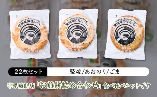 - <3種合計22枚 >簡易包装 お煎餅詰め合わせセット| 草加煎餅 草加せんべい 宇原煎餅店 宇原煎餅 堅焼き煎餅 かたやき煎餅 かたやきせんべい 硬いせんべい 伝統 お土産 自宅用 簡易包装 お試し 青のり 海老 ごま せんべい 煎餅 草加市 埼玉県