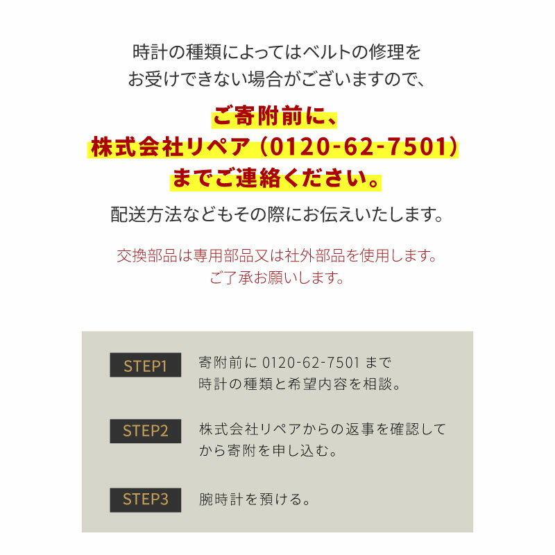 - 【ふるさと納税】 ★ご寄附前にお電話必須!腕時計 ベルト修理 国産品 [F-10001] /点検 メンテナンス 分解 修理 ベルト 交換 時計