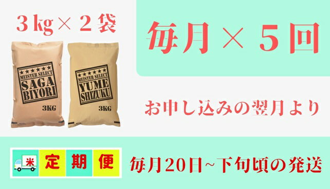 - 【ふるさと納税】『新米予約初回2025年11月発送』【5回定期便】【無洗米食べ比べ!】さがびより3kg・夢しずく3kg 【五つ星お米マイスター厳選!】(CID09)