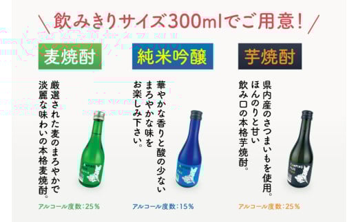 CAMPING PLUS 3本セット(純米吟醸・麦焼酎・芋焼酎)300ml 各1本【日本酒 焼酎 飲み比べ お酒 酒 水戸市 茨城県】(DW-144)
