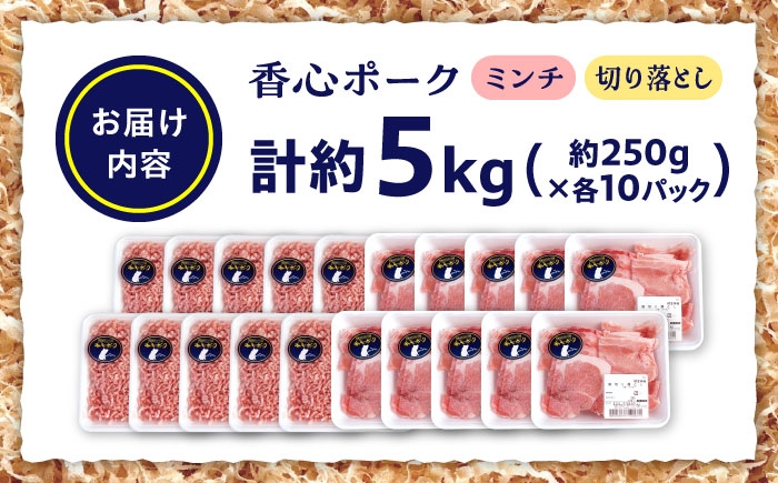 『香心ポーク』切り落とし ミンチ セット 各約250g×10パック(計約5kg)豚肉 冷凍 熊本県産 【有限会社 コーシン】 [AYCK028]