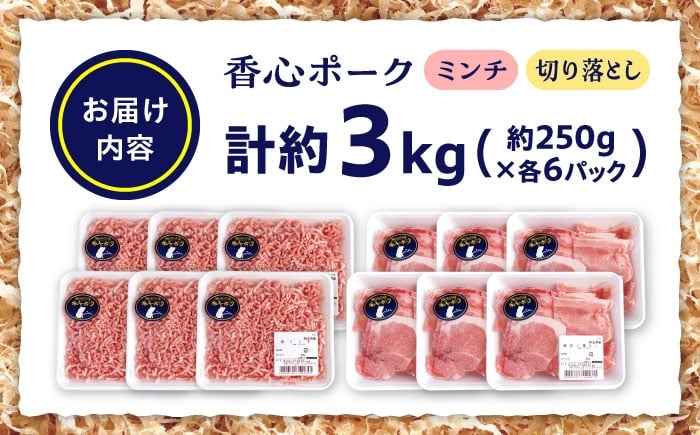 - 『香心ポーク』切り落とし ミンチ セット 各約250g×6パック(計約3kg)豚肉 冷凍 熊本県産 【有限会社 コーシン】 [AYCK026]