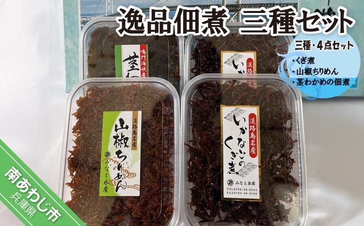 逸品佃煮 三種・4点セット (くぎ煮・山椒ちりめん・茎わかめの佃煮)