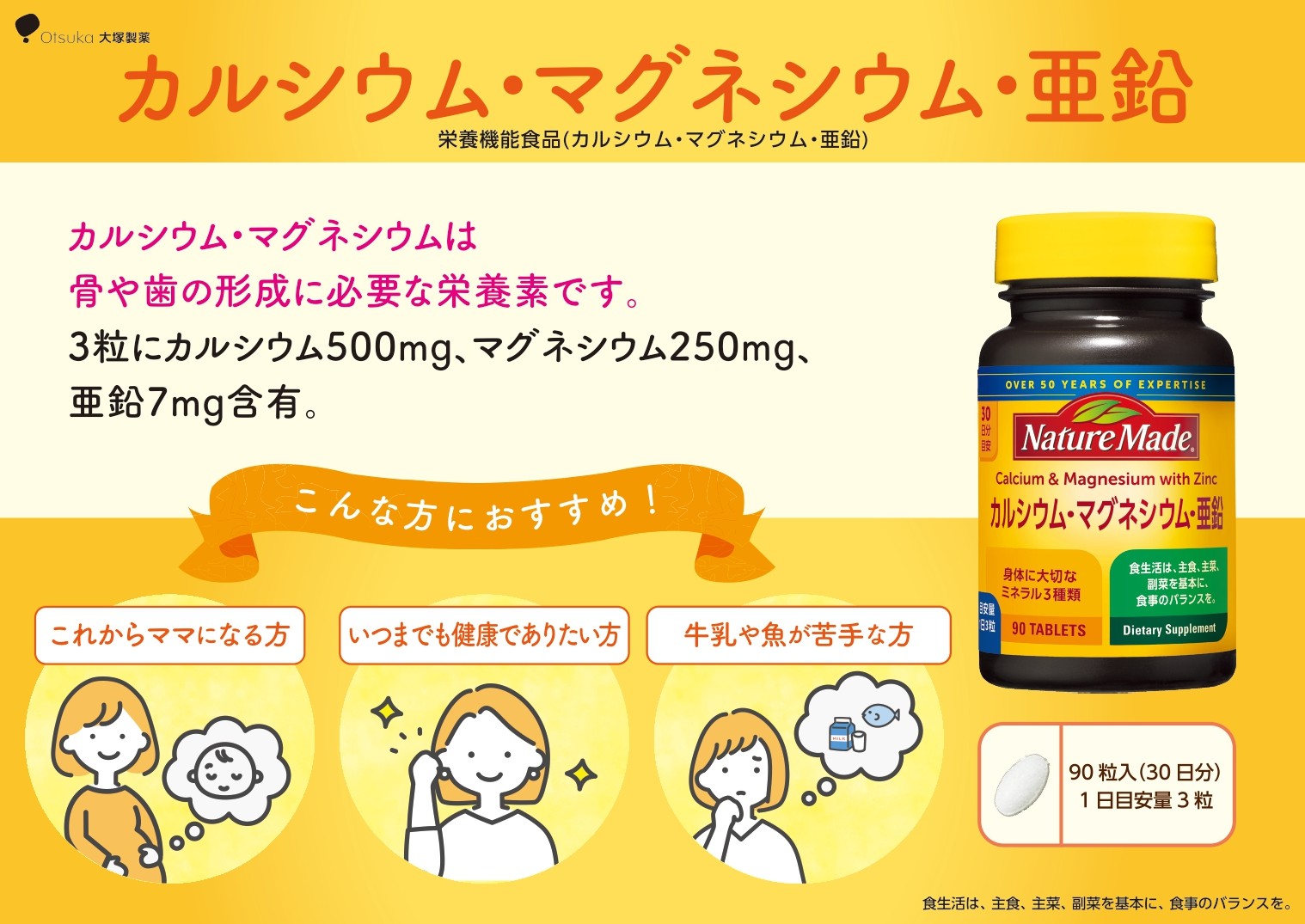 - ネイチャーメイド 大塚製薬 カルシウム マグネシウム 亜鉛 サプリメント 90粒×2個(60日分) 歯 骨 健康維持 ビタミンD 体内酵素 エネルギー 血液循環 栄養素 静岡県 富士市 [sf015-044]