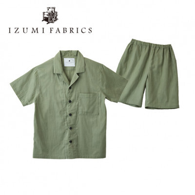 - <男女兼用 サイズ:L>半袖×半ズボン プレミアムガーゼパジャマ (カラー:ミモザグリーン)【1523108】