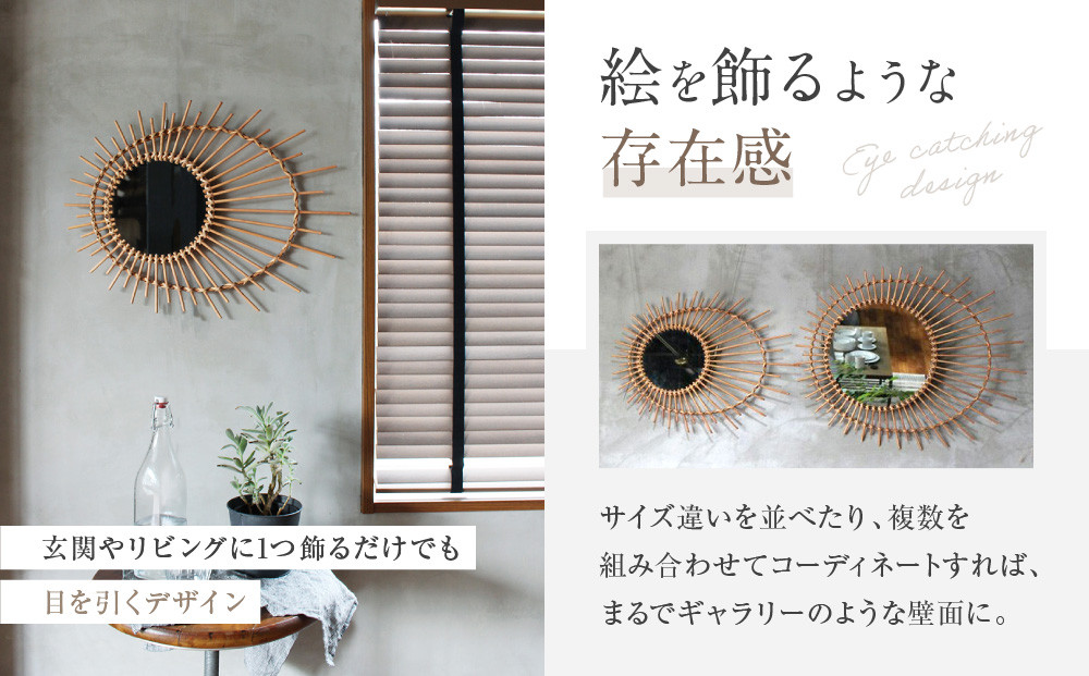 【a.depeche】ロッタ ラタン ミラー ソレイル S(壁掛けミラー,インテリアミラー) [ 京都 インテリア ブランド 欧風スタイル おしゃれ 壁掛け 鏡 ラタン 人気 おすすめ インテリア 家具 雑貨 日用品 お取り寄せ 通販 送料無料 ふるさと納税 ] 261009_A-YJ012
