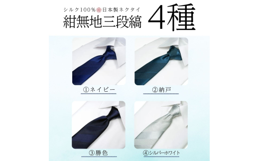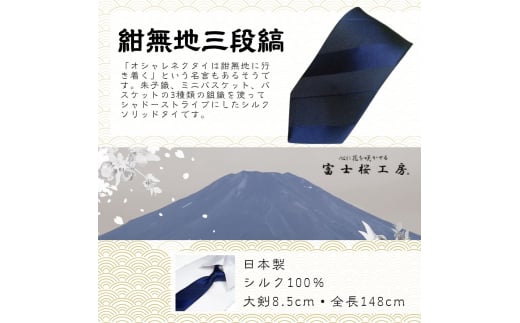 - シルク100% ネクタイ 富士桜工房 紺無地 三段縞 116ネイビー /ネイビー 紺 ストライプ/ 郡内織ブランド シルク ネクタイ プレゼント 贈り物 ビジネス 冠婚葬祭 国産 日本製【n0262_yam_A】