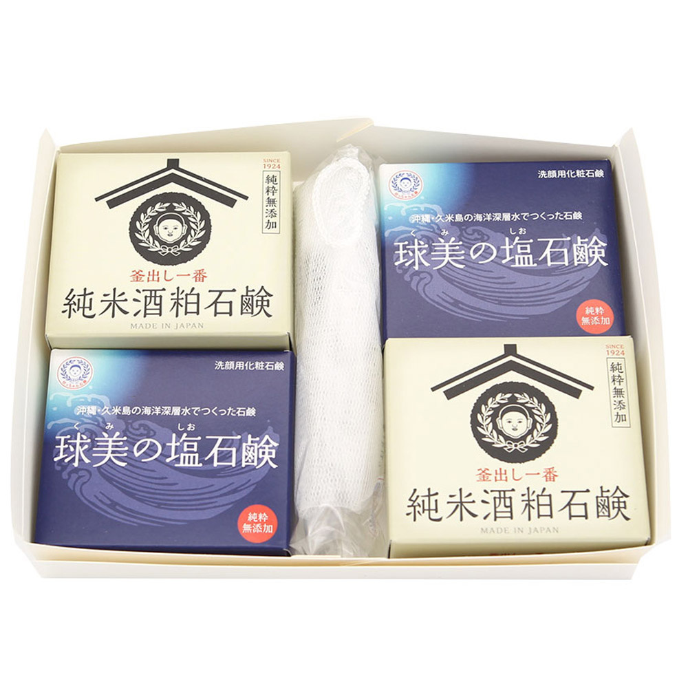 - 「釜出し一番純米酒粕石鹸」「球美の塩石鹸」詰め合わせセット 石鹸 無添加