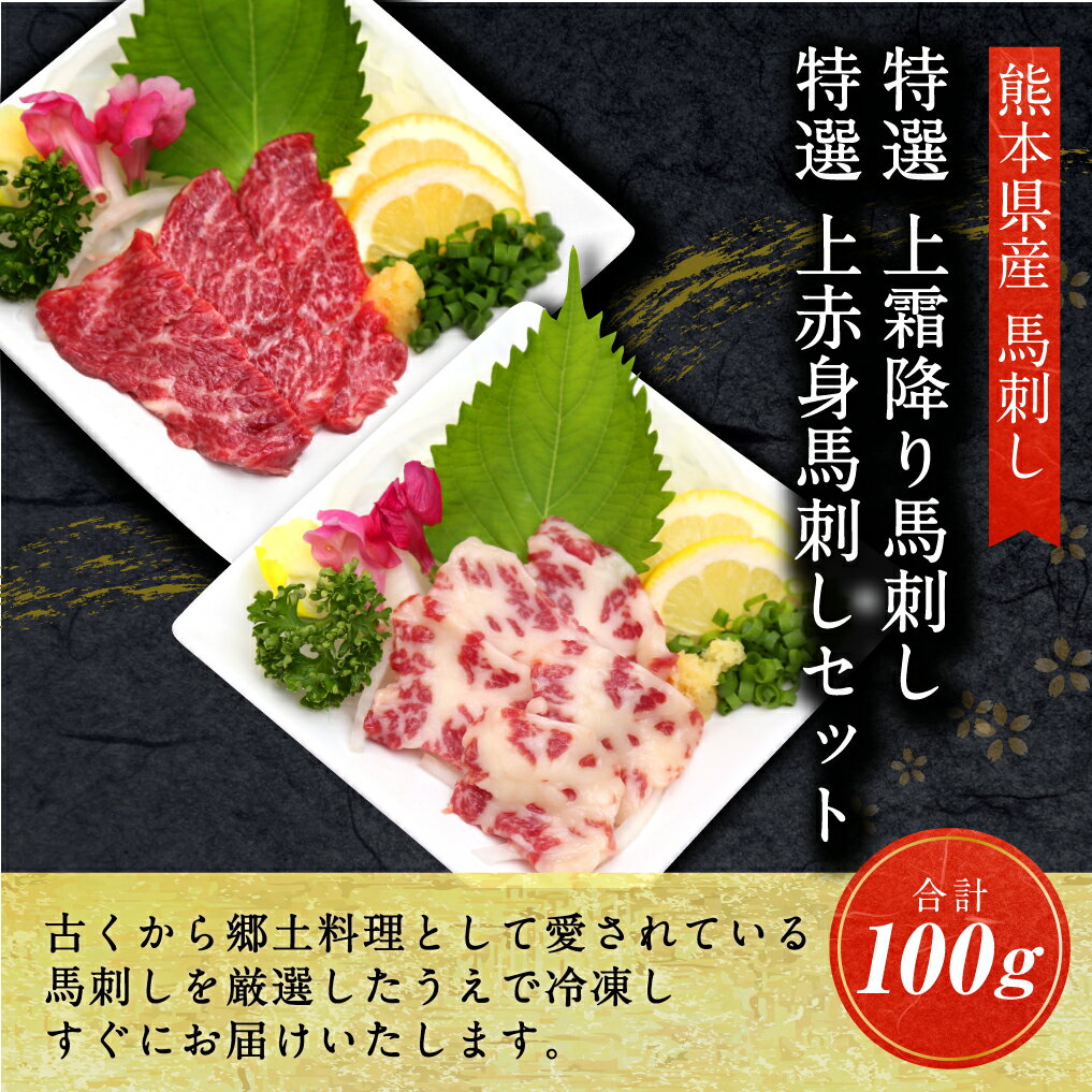【ふるさと納税】特選上霜降り馬刺し 特選上赤身馬刺し 合計100g 50g×各1パック 2種類 馬刺し ばさし 馬肉 赤身 セット 冷凍 送料無料
