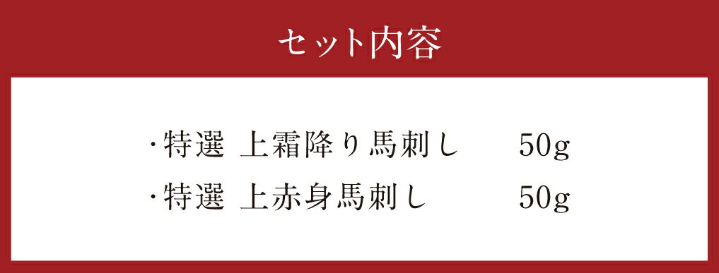 - 【ふるさと納税】特選上霜降り馬刺し 特選上赤身馬刺し 合計100g 50g×各1パック 2種類 馬刺し ばさし 馬肉 赤身 セット 冷凍 送料無料