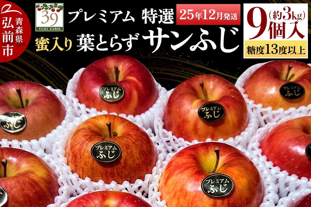 - 【25年12月発送】りんご 【 数量限定 】糖度13度以上 「特選」 プレミアム 蜜入り 葉とらずサンふじ 約 3kg 9個入り