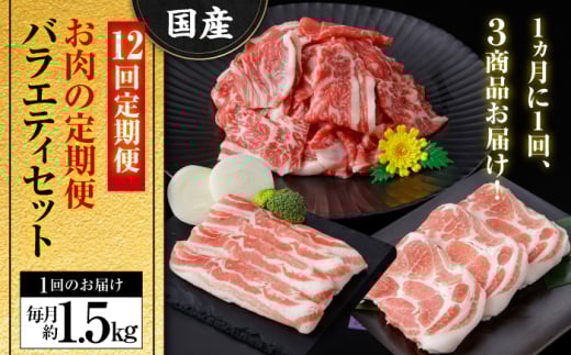 【12回定期便】お肉の定期便 バラエティセット (12ヵ月) 総計約18kg 国産 牛肉 切り落とし 豚肉 バラ スライス 【(有)山重食肉】 [ATAP118]