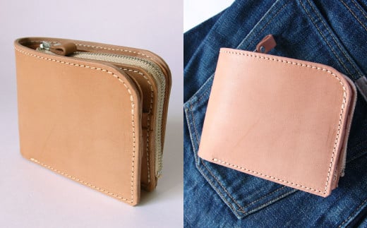 - L字 ファスナー 小銭入れつき・2つ折り財布 ヌメ革 牛革 革 レザー 財布 革財布 小銭入れ 二つ折り 革製品