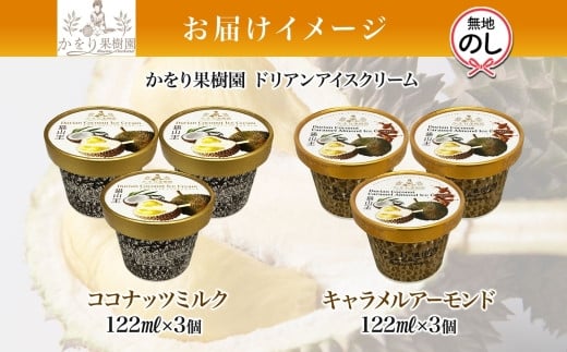 - 無地熨斗 ドリアン アイスクリーム 2種 計6個 ココナッツミルク キャラメル アーモンド カップアイス スイーツ お菓子 ソフトクリーム おやつ デザート ご当地アイスセット 詰め合わせ お取り寄せ ギフト お返し 送料無料 かをり果樹園 静岡県 沼津市