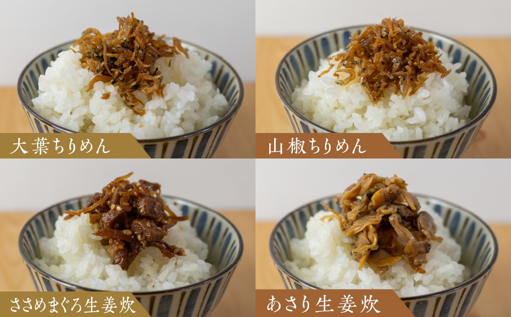濱金商店 高級佃煮 8種セット簡易包装 (ご自宅用 訳あり) 詰め合わせ 大葉あさり / 山椒ちりめん / 大葉ちりめん / ささめまぐろ生姜炊 / 帆立しぐれ / とろける昆布 など