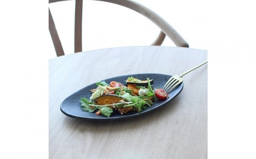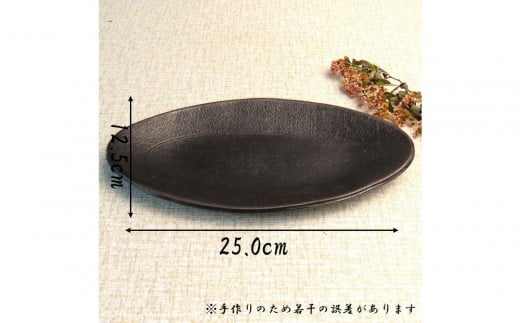 - 【信楽焼】楕円プレート(ブラック) 2枚セット mu-004