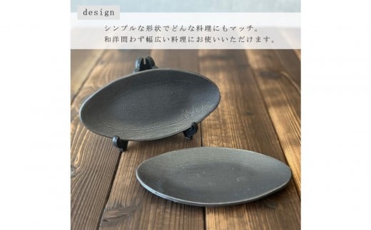 【信楽焼】楕円プレート(ブラック) 2枚セット mu-004