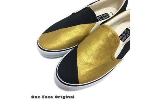 - 手描きスニーカー「anti(G)」26.0cm アンティークゴールド×ブラック【受注制作】