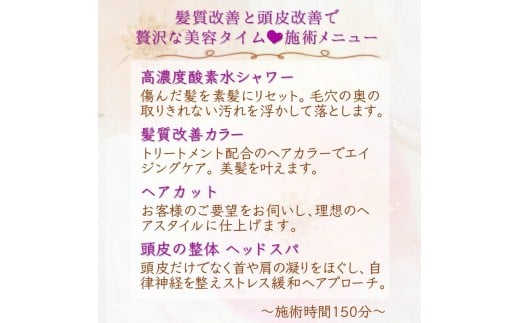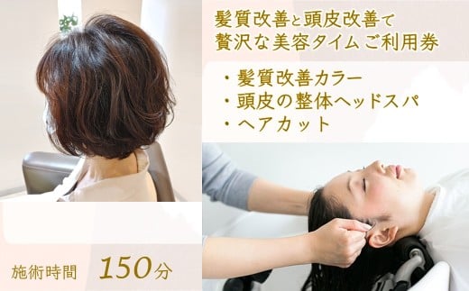 「髪質改善と頭皮改善で贅沢な美容タイム」 ご利用券 カット 髪質改善カラー 頭皮の整体ヘッドスパ 高濃度酸素水 所要時間 150分