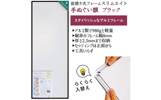 手ぬぐい額 アルミフレーム 330x900mm ブラック 前開き式 アルミ額縁 スリムエイト