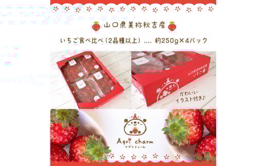 - 秋吉台のミネラルたっぷり!! Agri charmの いちご 食べ比べセット ( 2品種 以上× 4パック ) 先行予約 < 2026年2月下旬 ~ 4月下旬頃の期間で順次発送予定> | いちご 苺 イチゴ フルーツ 果物 食べ比べ 美祢市 山口県 美祢 秋吉台 糖度 甘い 期間限定