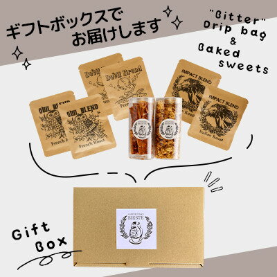 - 【ふるさと納税】【ギフトに使える】自家焙煎珈琲の「ビター」ドリップバッグと焼き菓子2種のギフト【1637808】