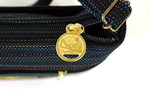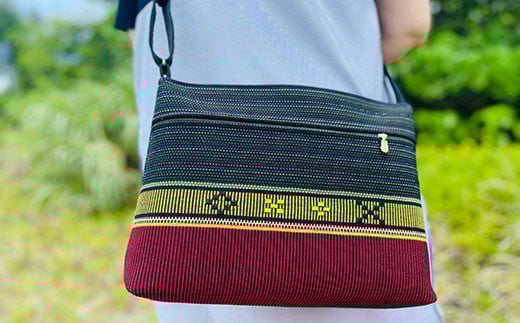 - 手織り花織みんさ ショルダーポシェットM(黒赤)AI-3