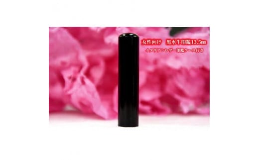 【女性向け】手彫り職人が彫った黒水牛印鑑13.5ミリ イタリアンレザ-印鑑ケース付き