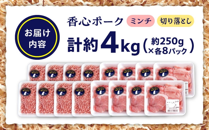 『香心ポーク』切り落とし ミンチ セット 各約250g×8パック(計約4kg)豚肉 冷凍 熊本県産 【有限会社 コーシン】 [AYCK027]