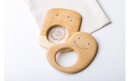 - 木のおもちゃ 歯がため 2個入 セット 巾着付き かわいい 歯固め 赤ちゃん ベビー 幼児 0歳から ギフト 包装 ラッピング プレゼント 贈り物 贈答 出産祝い 誕生日祝い のし 熨斗対応 受注生産品 山のくじら舎 高知県 安芸市