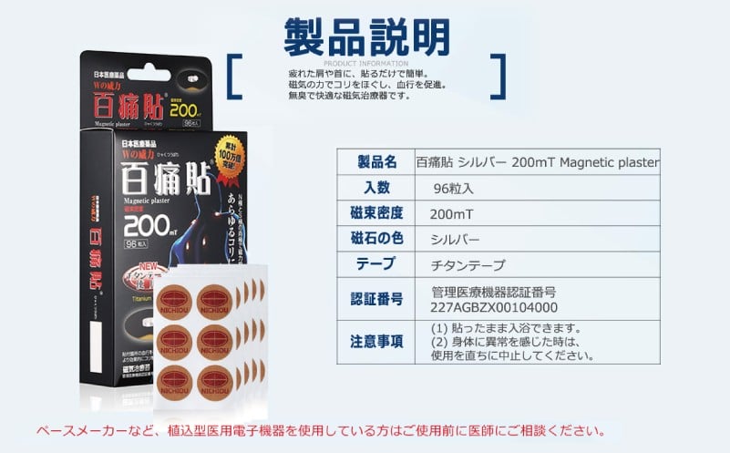 - 百痛貼 200mT シルバー 96粒(磁気テープ)