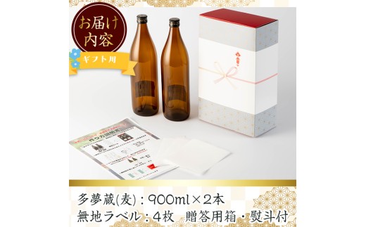 <ギフト用!>オリジナルラベルを作って貼れる!本格麦焼酎セット(900ml×2本・計1800ml / ラベル4枚と熨斗付) 麦焼酎 お酒 オリジナル【岩川醸造】A742