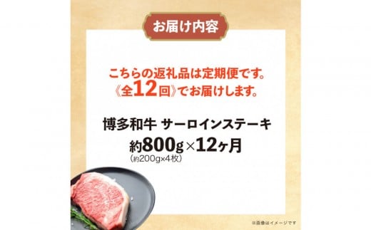 - 博多和牛 サーロインステーキ 定期便全12回 計:約9.6kg【約800g(約200g×4枚)×12回】